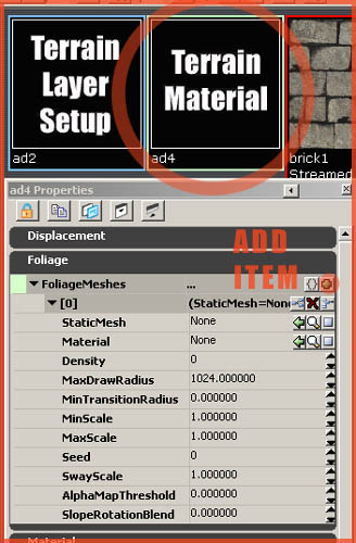 Staticmeshes can also be scattered around using a Foliage Volume. This is especially handy for smaller areas, or when no terrain is available. Please refer to my Foliage Volume tutorial for information on that.