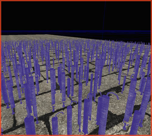 : The rotation of the foliage meshes dependent on the angle of the terrain quad below.