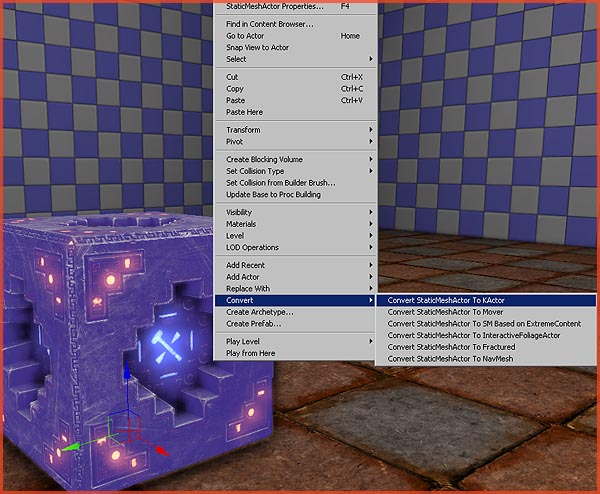 If this property is on, any regular Staticmesh actor will automatically transform itself into a Kactor as soon as a force is applied to it, and it reverts itself back to a Staticmesh as soon as it comes to a halt. This improves performance, as the object does is only rendered as a dynamic physics object when it actually moves.
