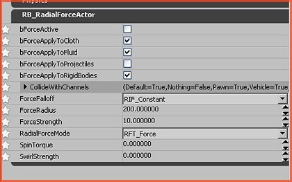 The other Force and Impulse actors are similar to this RadialForceActor.